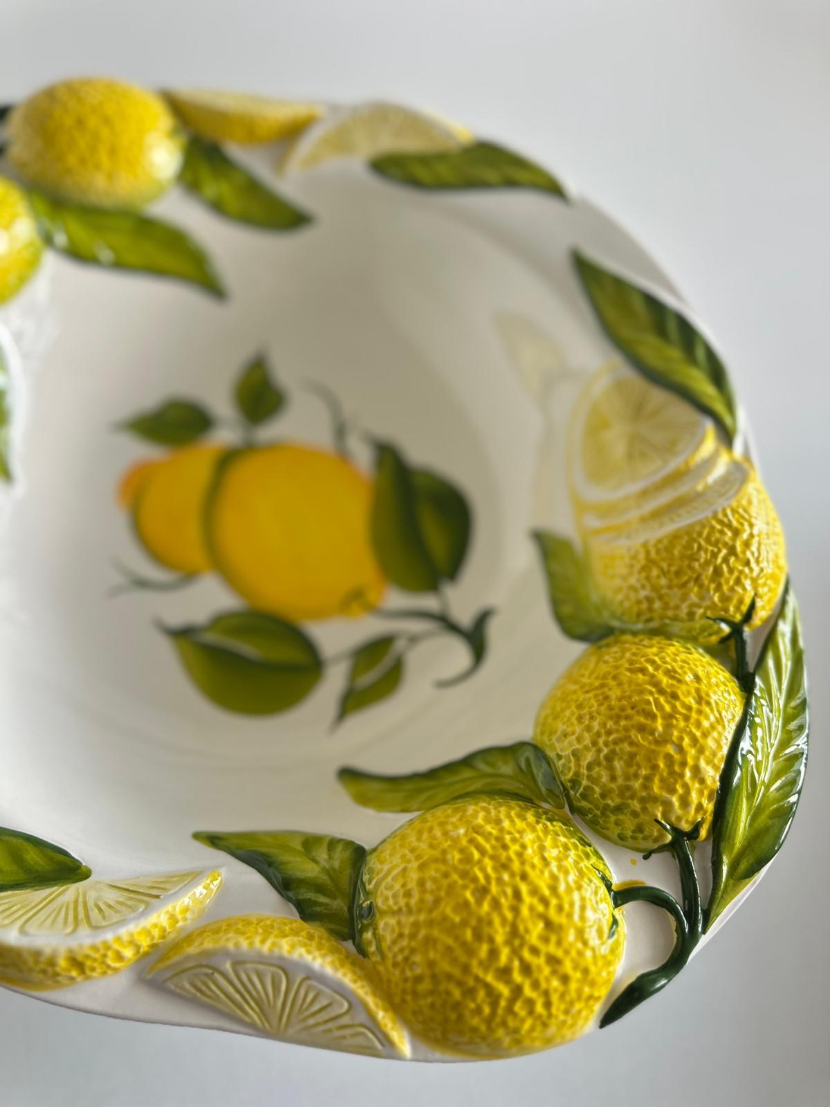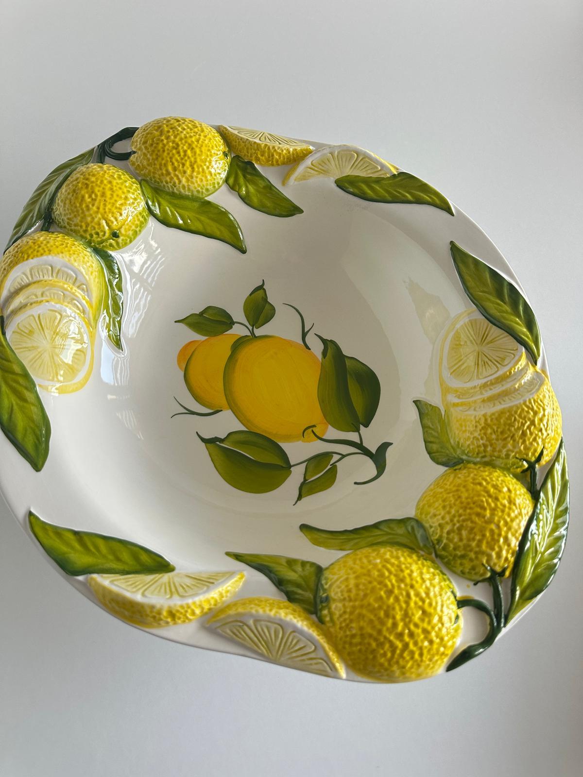 Duża patera cytryny to eleganckie i funkcjonalne naczynie, które idealnie sprawdzi się na Twoim stole. Dzięki wyjątkowemu motywowi cytryn wniesie świeżość i unikalny styl do każdej przestrzeni. Wykonana z wysokiej jakości materiałów, jest nie tylko trwała, ale także łatwa w czyszczeniu, co czyni ją praktycznym wyborem na każdą okazję. To doskonały element dekoracyjny, który łączy piękno z użytecznością.