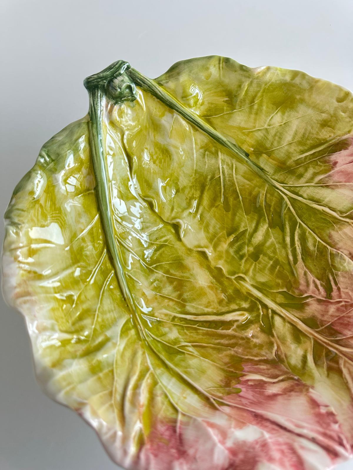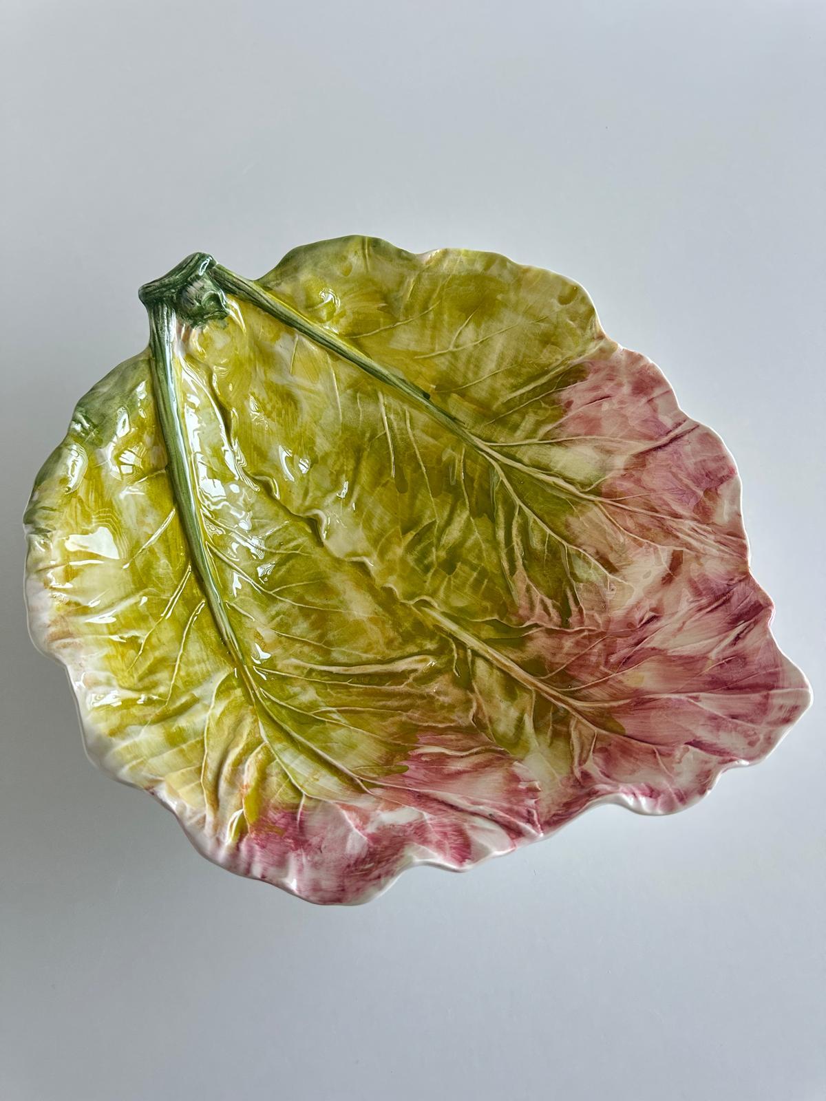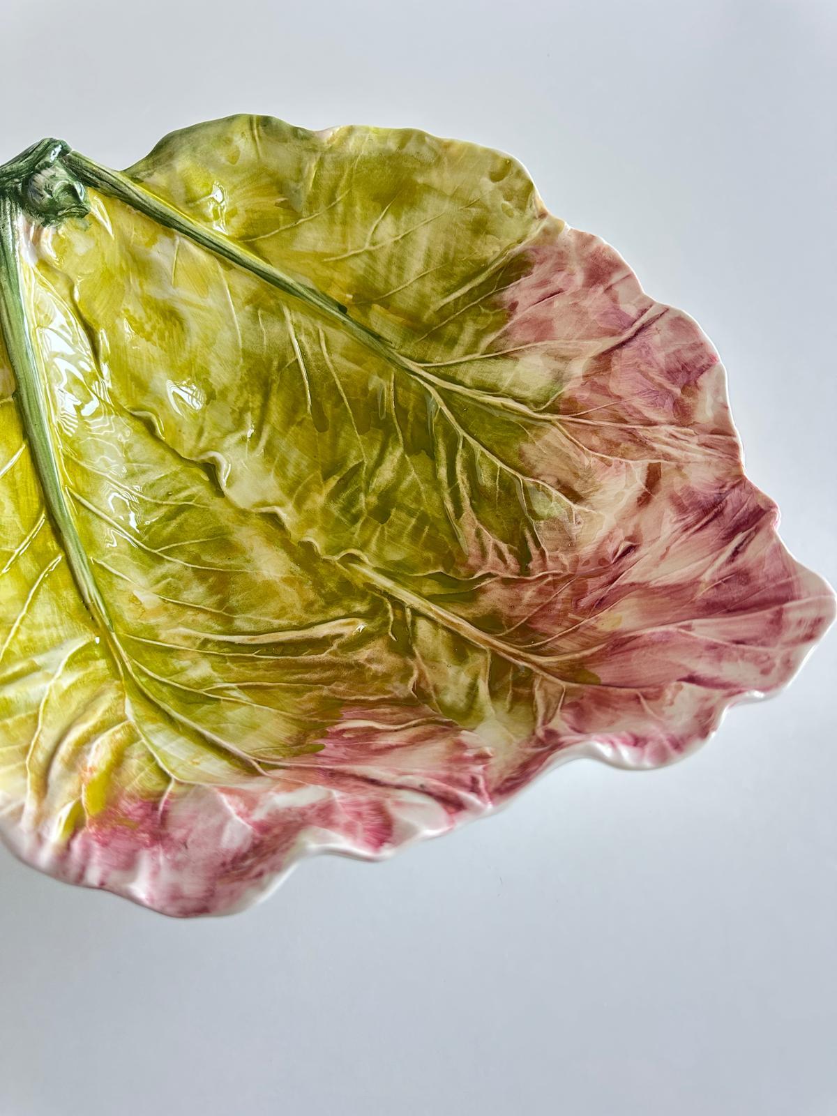 Efektowna miska głęboka w kształcie liścia kapusty to wyjątkowy element zastawy stołowej, który przyciąga wzrok swoją formą i subtelną kolorystyką. Inspirowana naturą, zachwyca realistycznym odwzorowaniem struktury liścia oraz harmonijnym połączeniem odcieni zieleni z delikatnym różem.