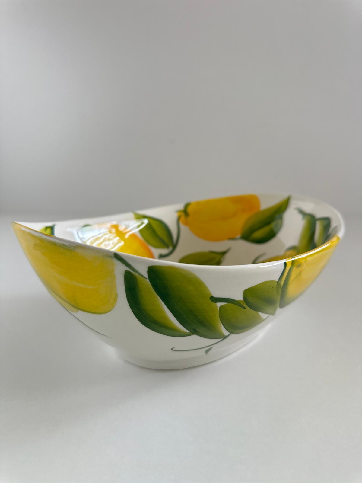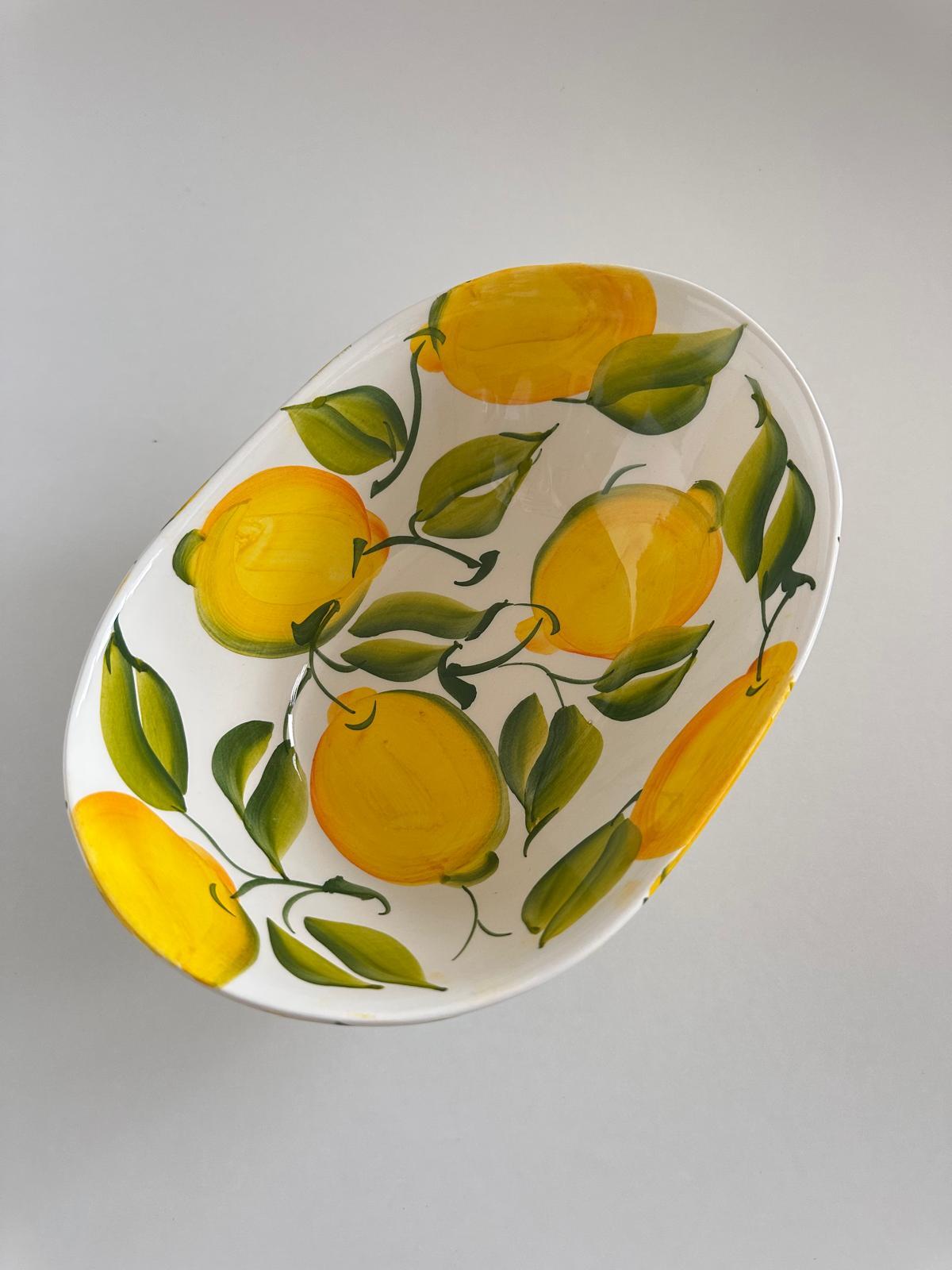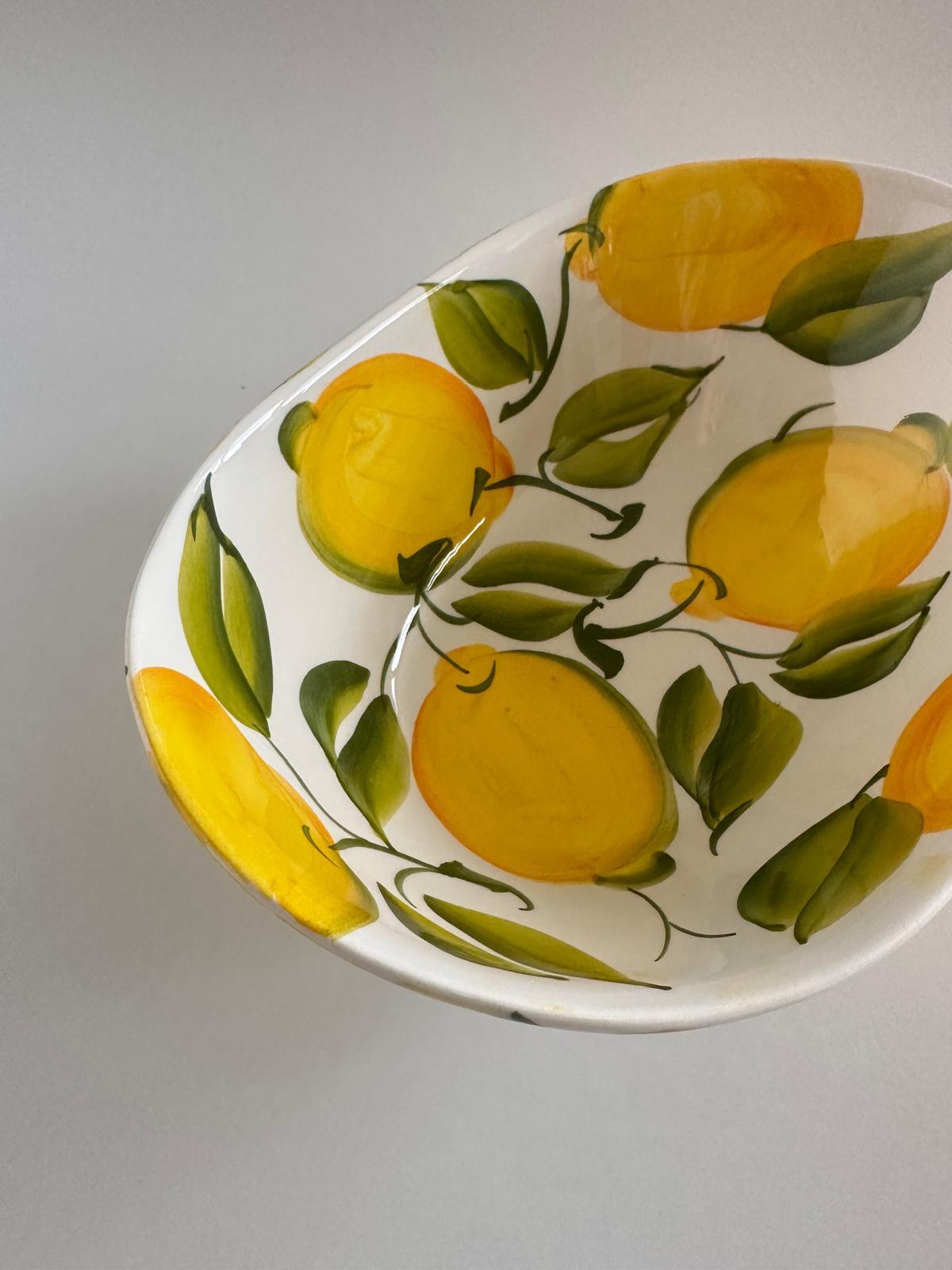 Odkryj wyjątkowe piękno włoskiego rzemiosła dzięki tej eleganckiej misce wykonanej z wysokiej jakości ceramiki. Każdy egzemplarz jest ręcznie malowany, co sprawia, że wzór soczystych cytryn nabiera unikalnego charakteru i śródziemnomorskiego uroku.