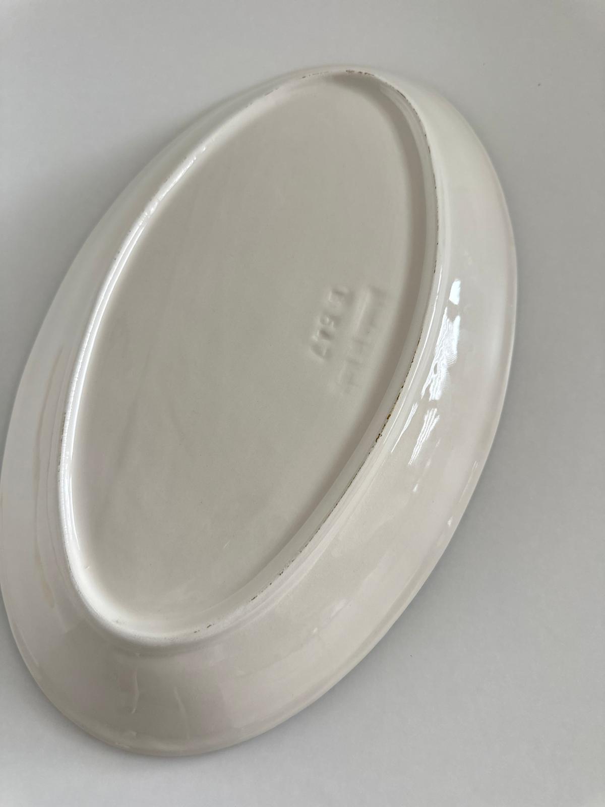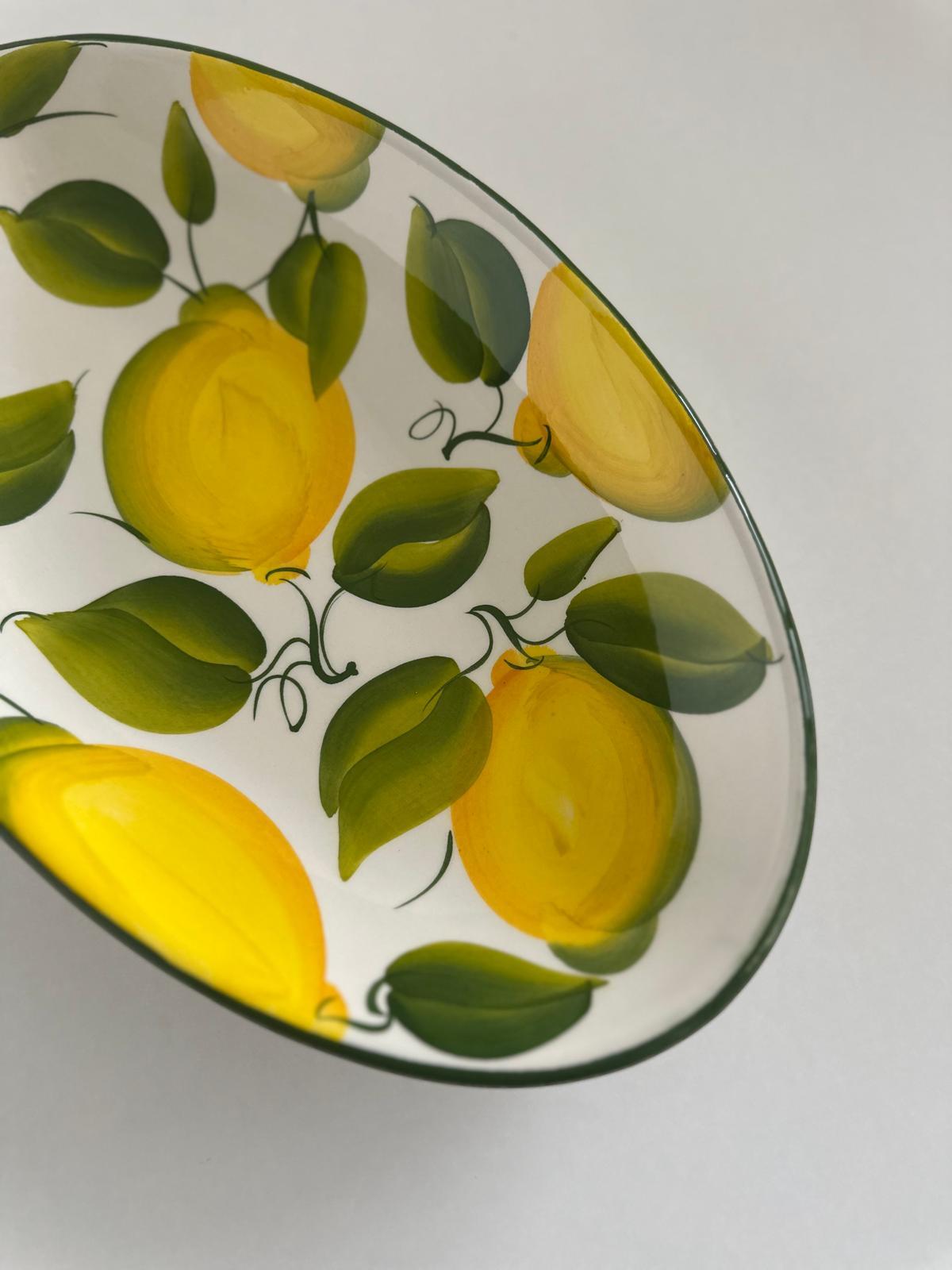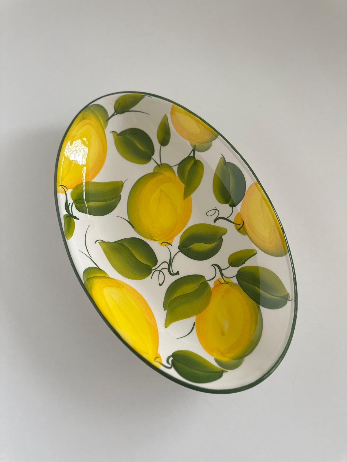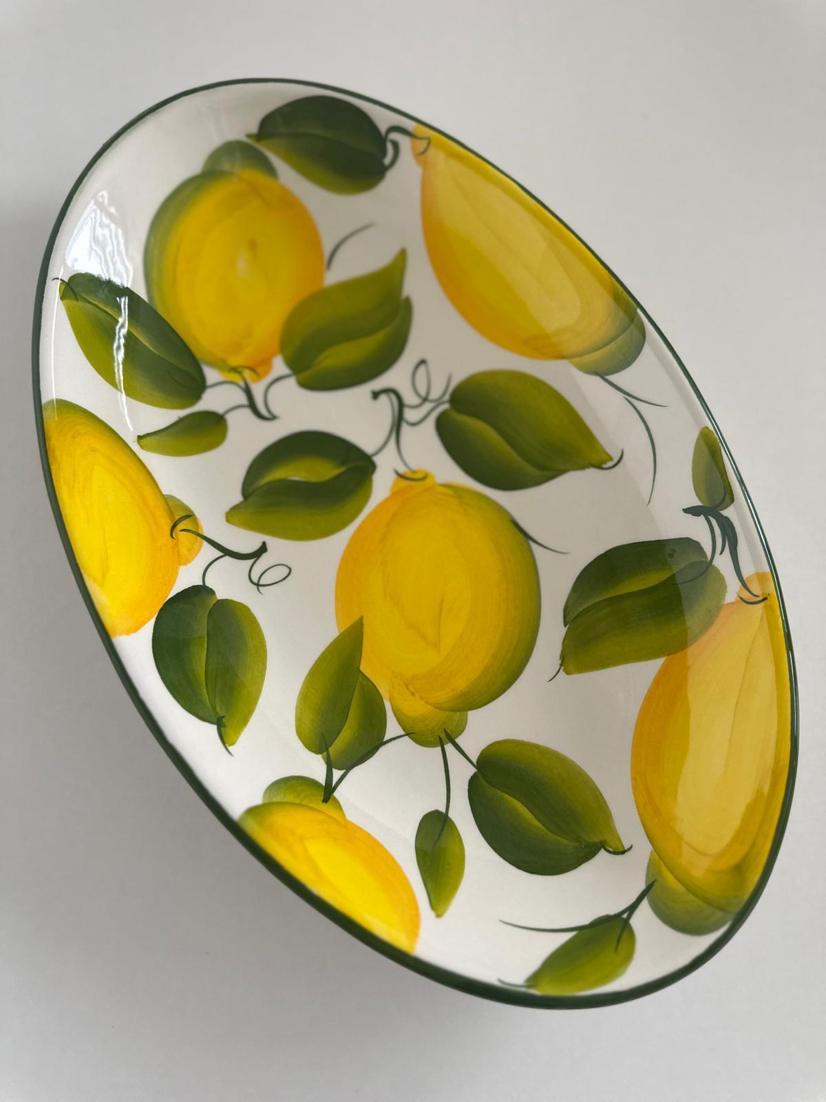 Owalny półmisek wykonany z wysokiej jakości włoskiej ceramiki to połączenie tradycyjnego rzemiosła i ponadczasowego stylu. Każdy egzemplarz jest ręcznie malowany, co nadaje mu unikalny charakter i sprawia, że nie ma dwóch identycznych sztuk.
