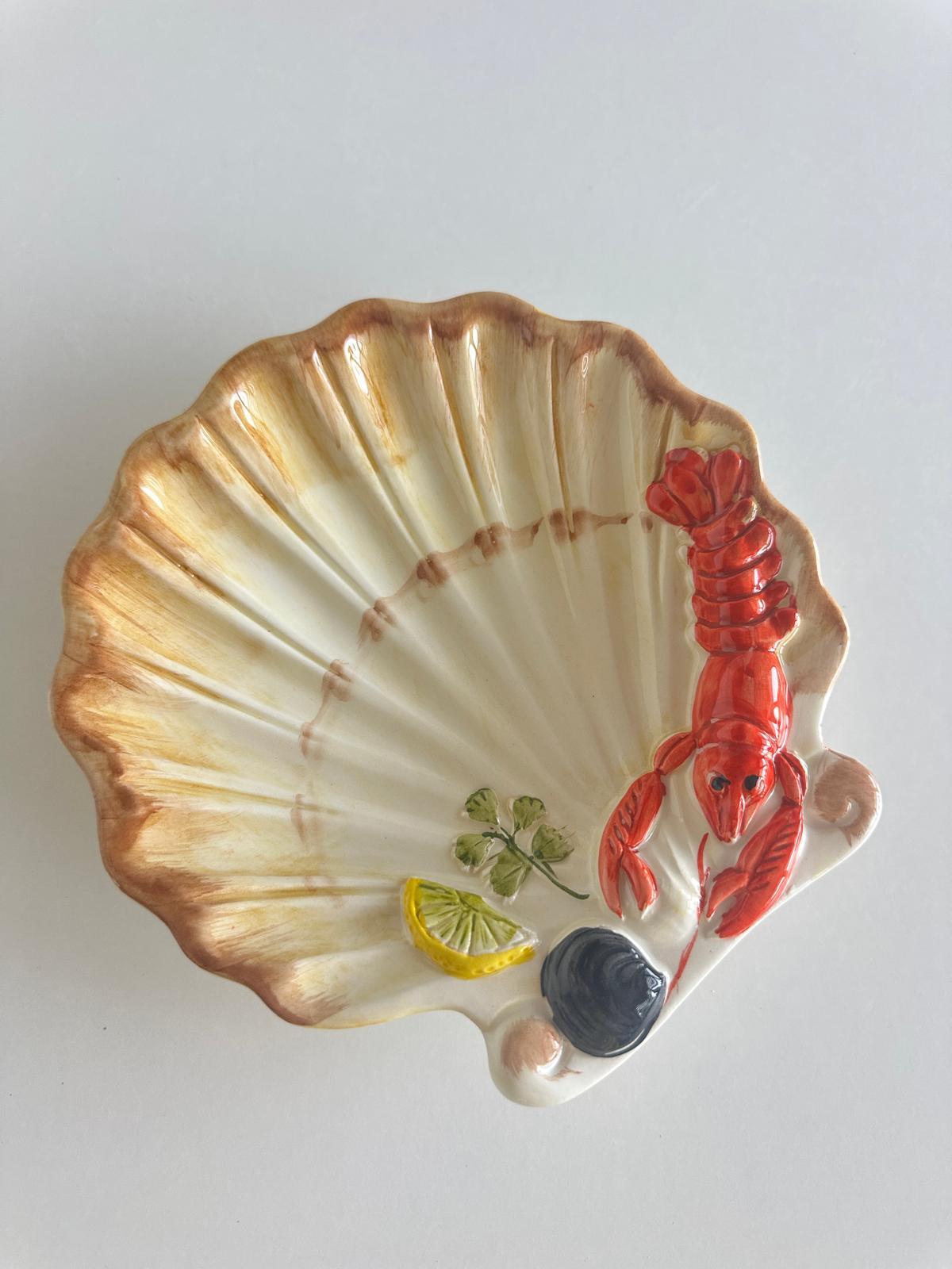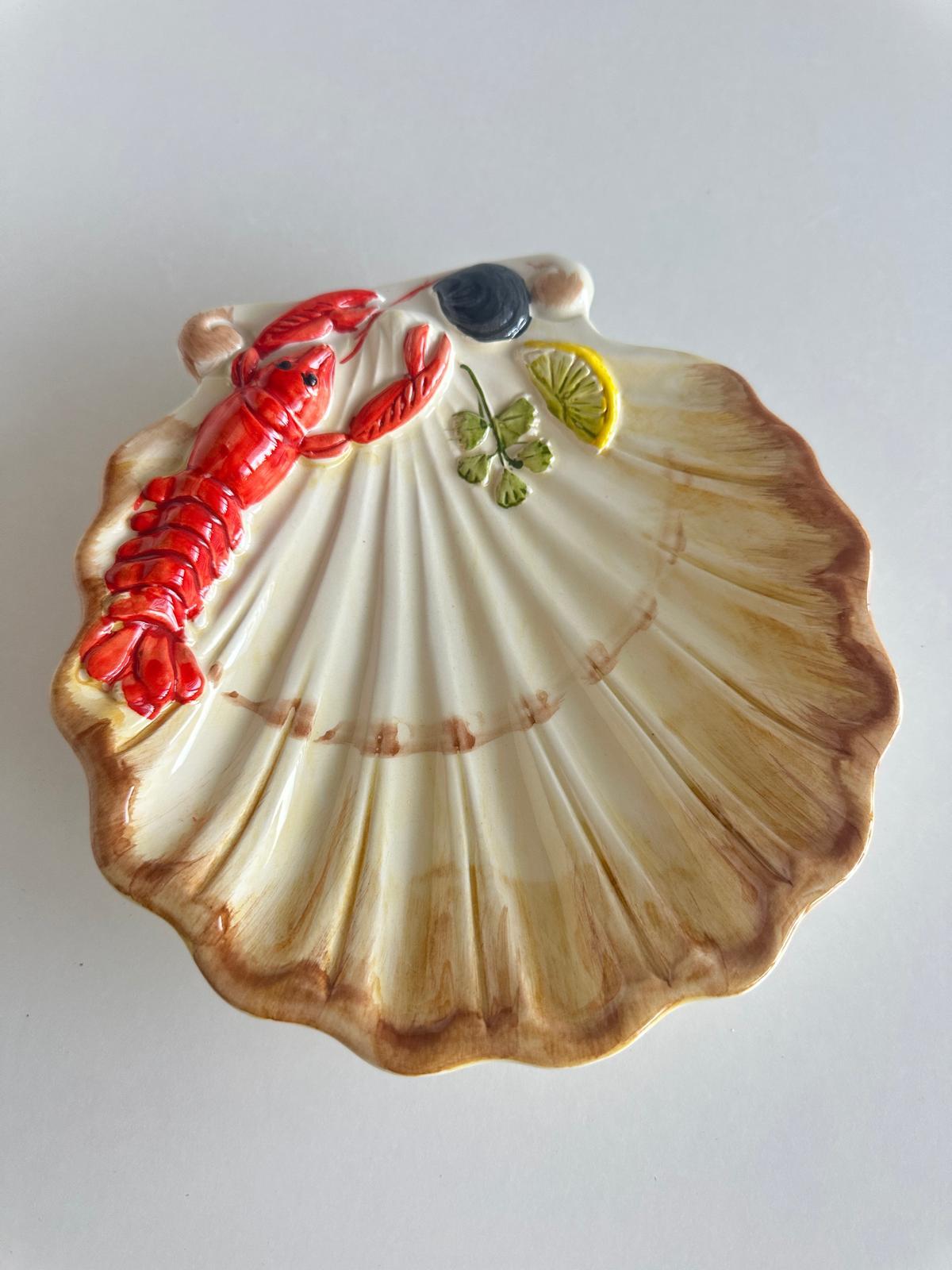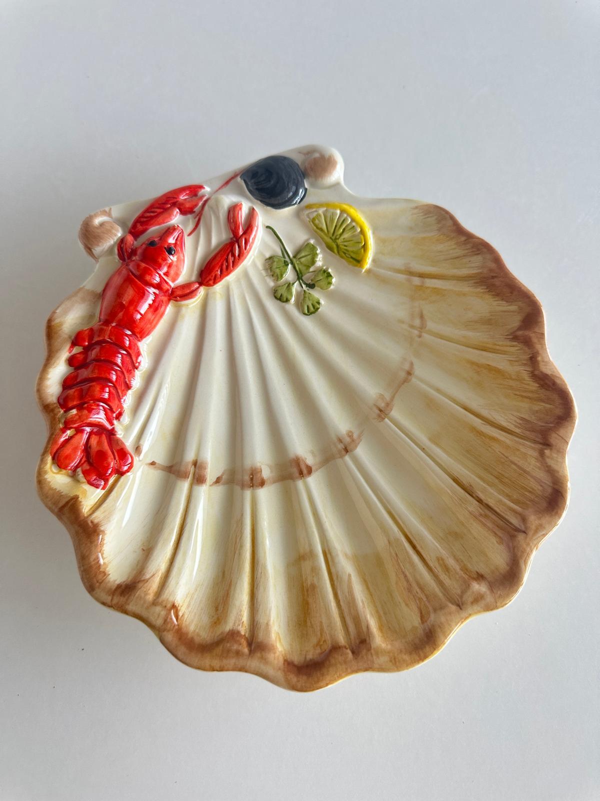 Na brzegu półmiska znajduje się efektowna, trójwymiarowa dekoracja przedstawiająca kraba i cytrynę , która dodaje całości świeżości i dekoracyjnego uroku. Precyzyjne wykonanie detali oraz delikatna, szkliwiona powierzchnia sprawiają, że naczynie prezentuje się niezwykle elegancko.